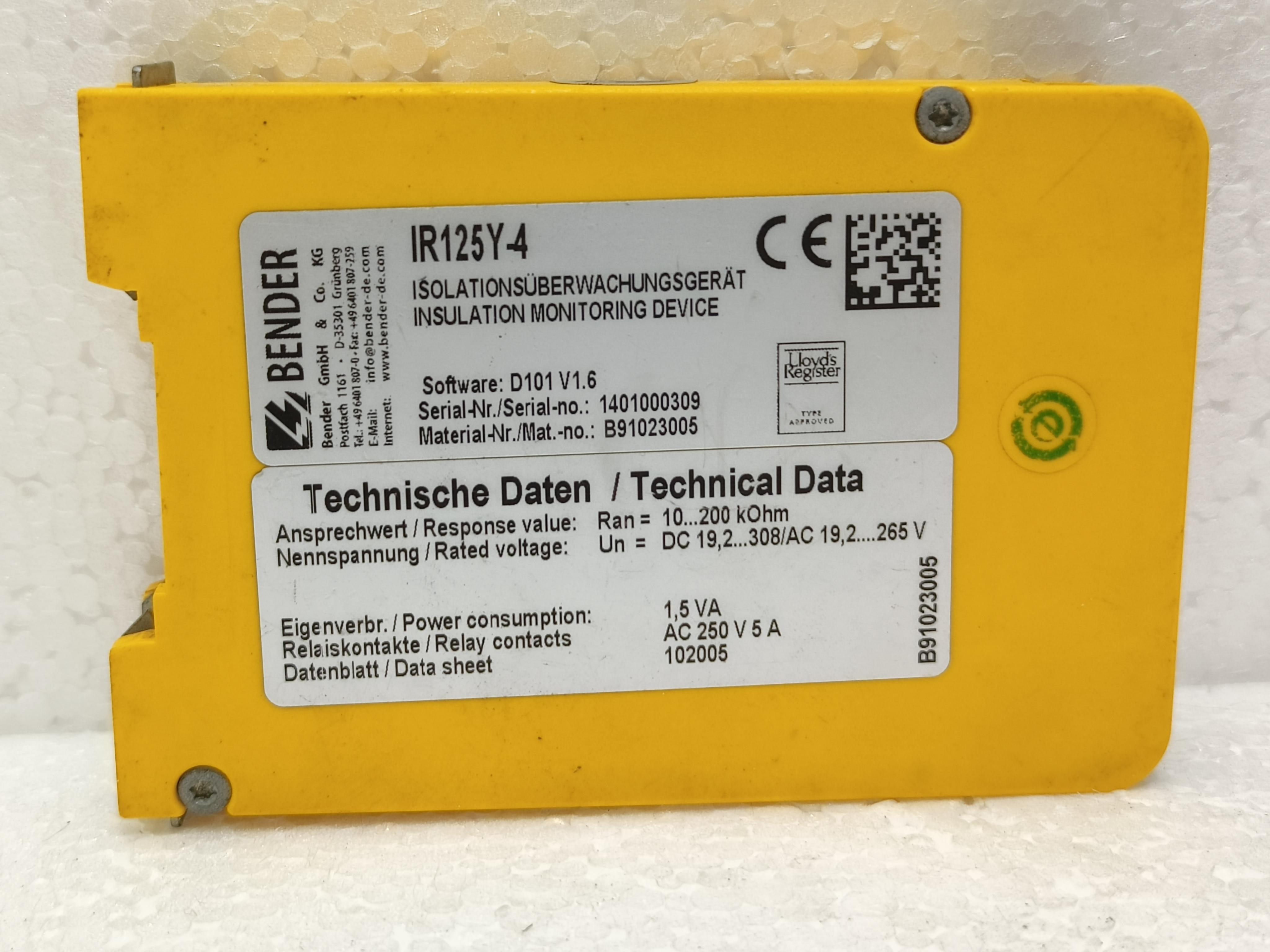 BENDER IR125Y-4 INSULATION MONITORING DEVICE