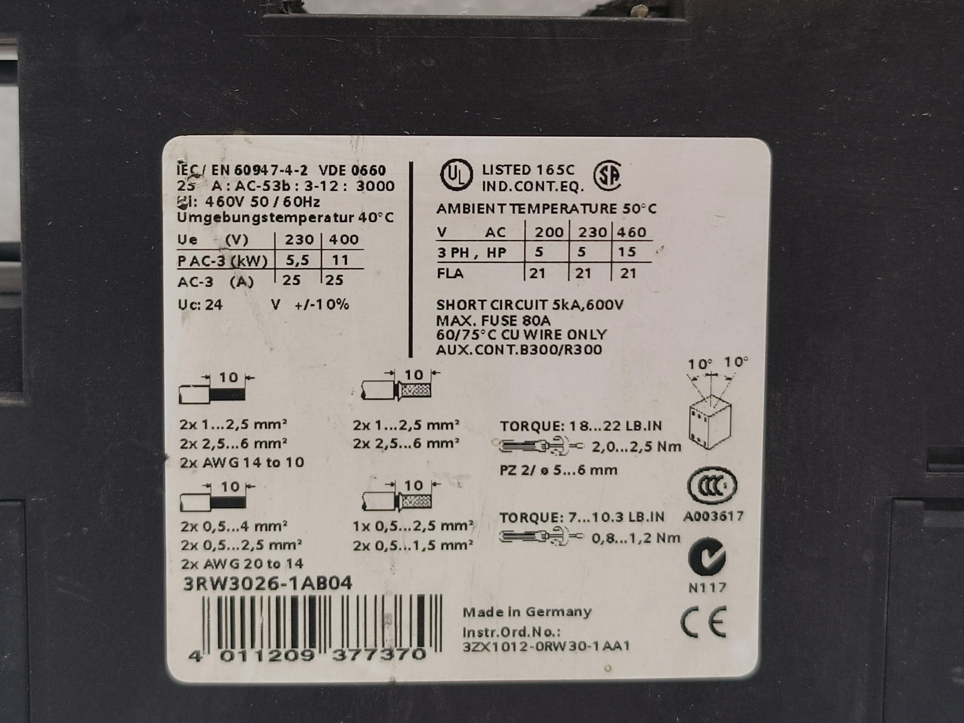 SIEMENS 3RW3026-1AB04 SIRIUS SOFT STARTER