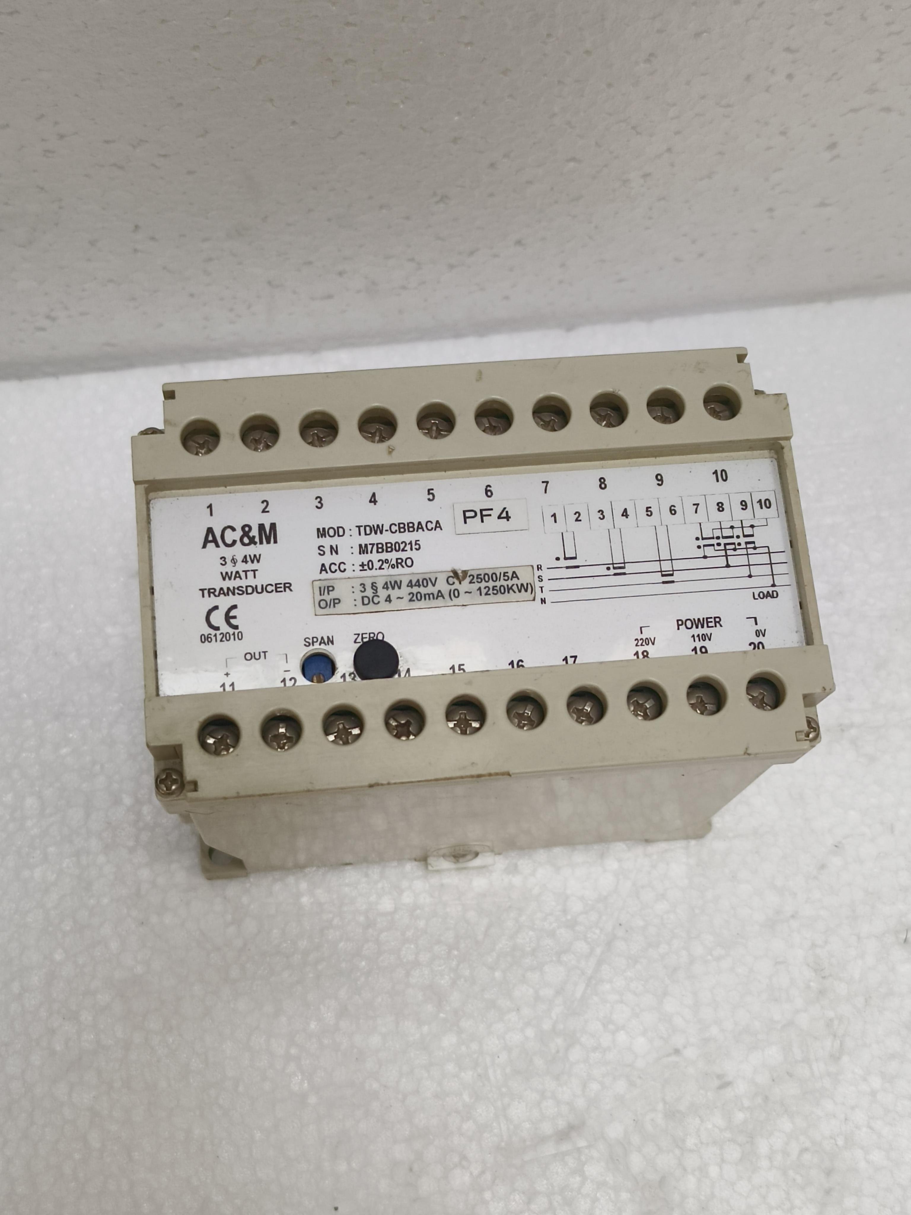 O/P: DC 4~20mA(0~1250KW)